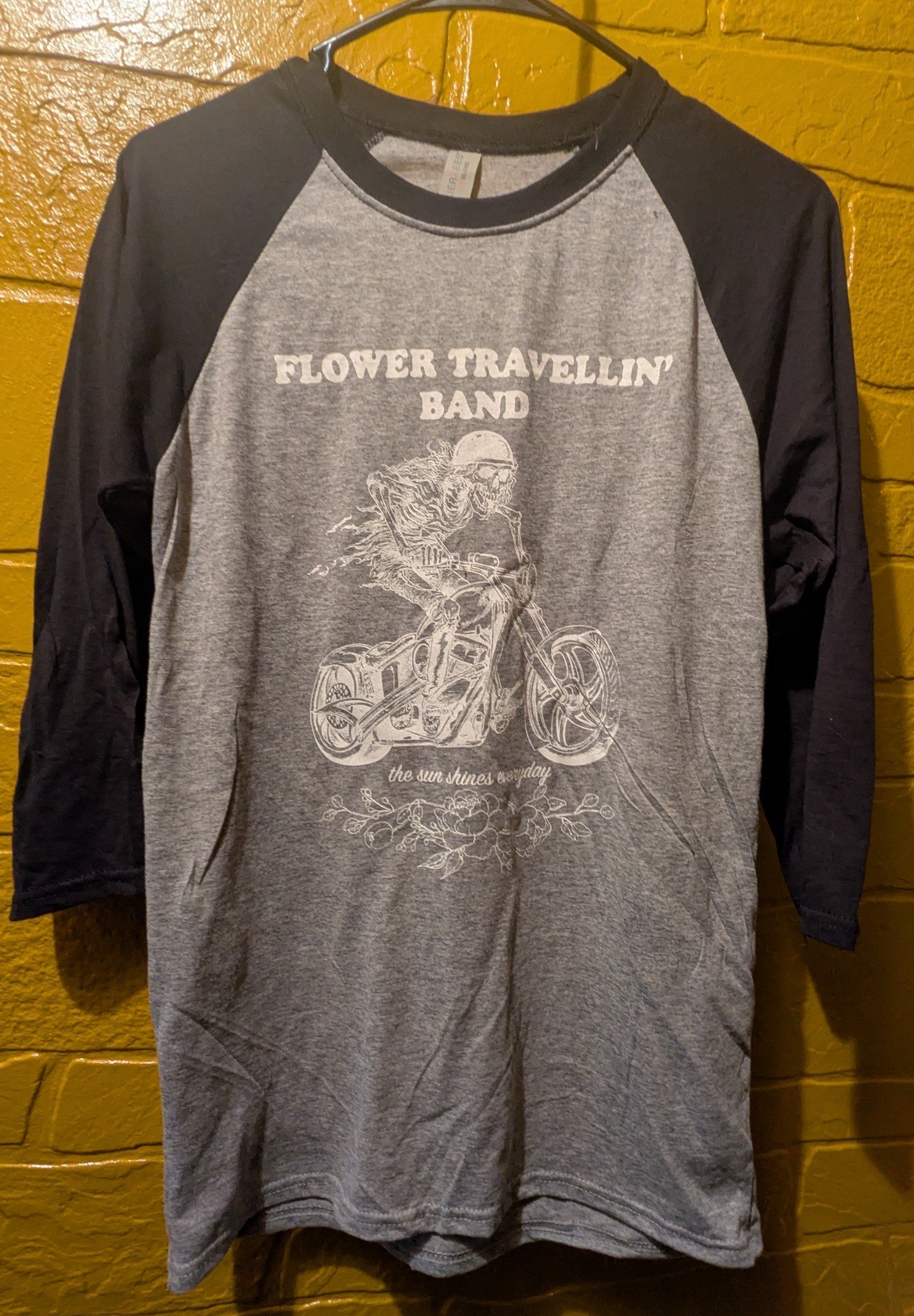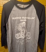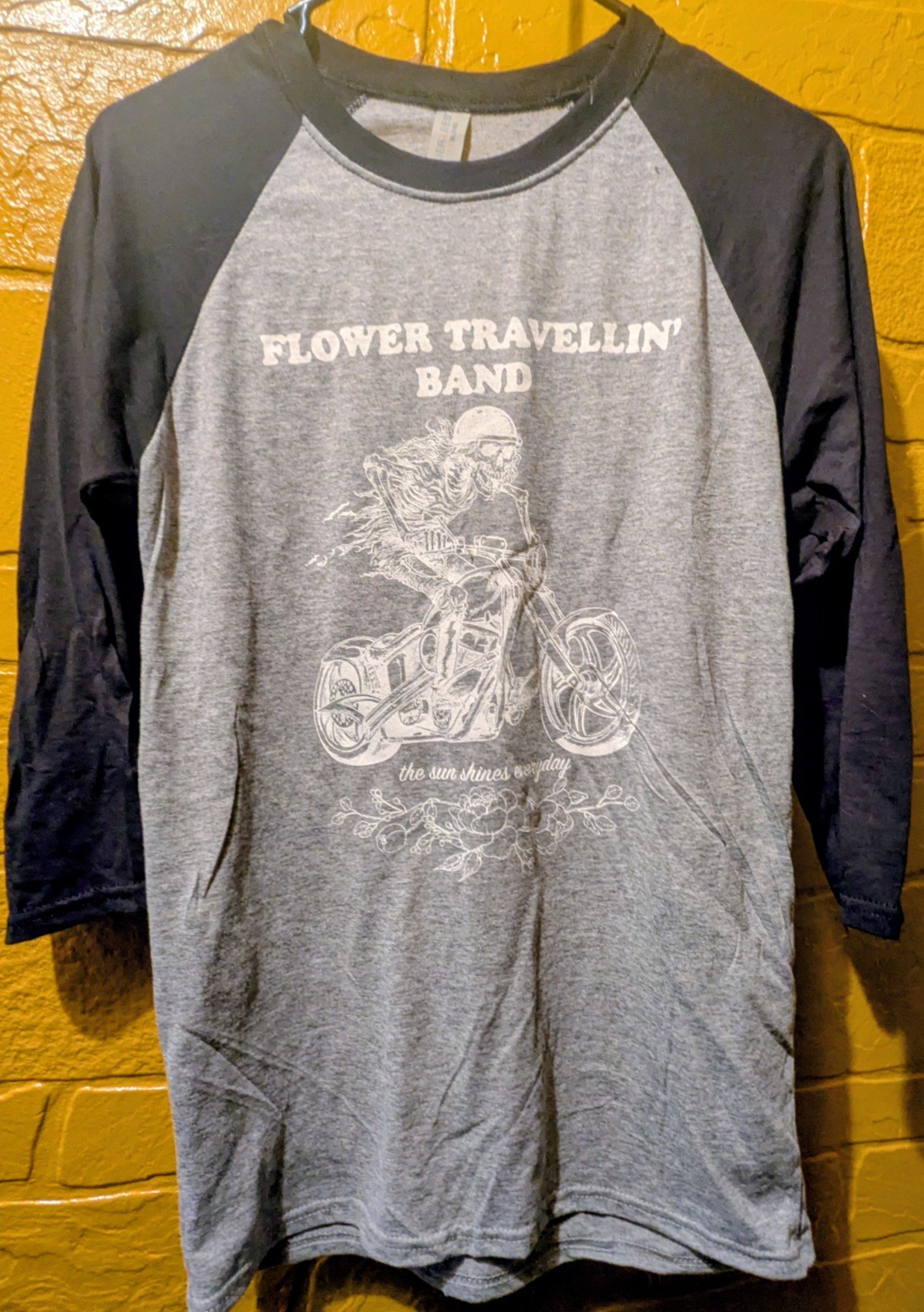 On a 50/50 cotton and poly blend 3/4 sleeve Jerzees brand tee